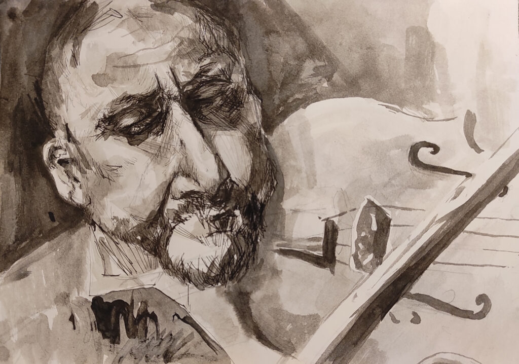 Przysunął sobie krzesło. Na kolanach ułożył altówkę. Odczekał chwilę, aż świeże powietrze wypełni jego płuca. Podniósł instrument, chwycił w zgrabiałe palce smyczek i – nie spuszczając oczu z Jej twarzy – wydobył pierwsze tony.