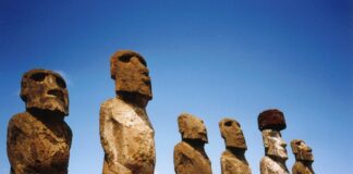 Produkcja megalitycznych posągów ( moai ) na Rapa Nui (Wyspa Wielkanocna,...