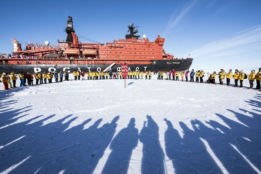 Od około 30 lat, na geograficzny biegun północny regularnie docierają komercyjne ekspedycje. Dodatkową atrakcją dla uczestników tej wyprawy jest środek transportu. Statek 50 лет Победы to jeden z największych lodołamaczy na świecie. © Christopher Michel (CC BY 2.0)
