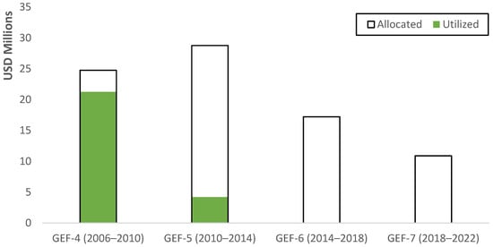 Od Szczytu Ziemi w Rio w 1992 r. Globalny Fundusz Ochrony Środowiska (GEF), utworzony w celu pomocy w rozwiązywaniu najpilniejszych problemów środowiskowych planety, sfinansował wiele krajów w kluczowych obszarach, takich jak degradacja gleby, bioróżnorodność, chemikalia i odpady, wody międzynarodowe, zrównoważona gospodarka leśna i zmiana klimatu. Iran był jednym z beneficjentów GEF, otrzymując prawie 31 milionów USD (kwota ta jest niewielka w porównaniu z dochodem narodowym Iranu i rocznym budżetem jego rządu; ale biorąc pod uwagę niskie środki budżetowe przeznaczone na sektor ochrony środowiska i aktywizm ekologiczny w Iranie, stosunkowo niewielkie międzynarodowe fundusze pomocy środowiskowej miały wpływ) na 18 projektów środowiskowych [ 150 ], które zostały wdrożone dzięki współpracy irańskiego rządu, firm i organizacji non-profit z agencjami międzyrządowymi, takimi jak UNDP (Program Narodów Zjednoczonych ds. Rozwoju), UNEP (Program Narodów Zjednoczonych ds. Ochrony Środowiska), FAO (Organizacja Narodów Zjednoczonych ds. Wyżywienia i Rolnictwa), Bank Światowy i UNIDO (Organizacja Narodów Zjednoczonych ds. Rozwoju Przemysłowego). Wsparcie finansowe GEF mogłoby być o wiele większe, tj. do 52,67 mln USD, gdyby nie sankcje ( Rysunek 3 ). Finansowanie GEF dla Iranu zostało znacznie zmniejszone na mocy sankcji, począwszy od piątej rundy finansowania GEF. Podczas tej rundy (2010–2014) wykorzystano mniej niż 15% (4,2 mln USD) środków pierwotnie przeznaczonych dla Iranu (28,77 mln USD). W szóstej rundzie (2014–2018) GEF przeznaczył 17,21 mln USD na rzecz Iranu, które pozostały całkowicie niewykorzystane. GEF przeznaczył 10,89 mln USD na rzecz Iranu w siódmej rundzie (2018–2022) przy 0% wskaźniku wykorzystania do tej pory.