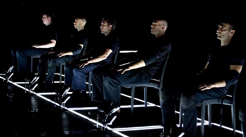 Jak zapomnieć w dziesięciu krokach (Anty-Prometeusz) . Lekki projekt: Şahika Tekand . Gracze: Cem Bender, Nedim Zakuto, Özgur Özkurt, Enes Demirkapi, Altay Içimsoy i Bahattin Genç. Zdjęcie: Studio Oyuncuları, dzięki uprzejmości TheatreIST, 2024
