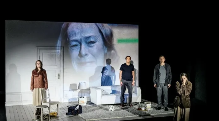 Livia Millhagen (Rita), Irene Lindh (babcia), Erik Ehn (Alfred), Hannes Meidal (Per) i Karin Franz Körlof (Asta) w Little Eyolf at Dramaten (2024). Zdjęcie: dzięki uprzejmości Dramaten