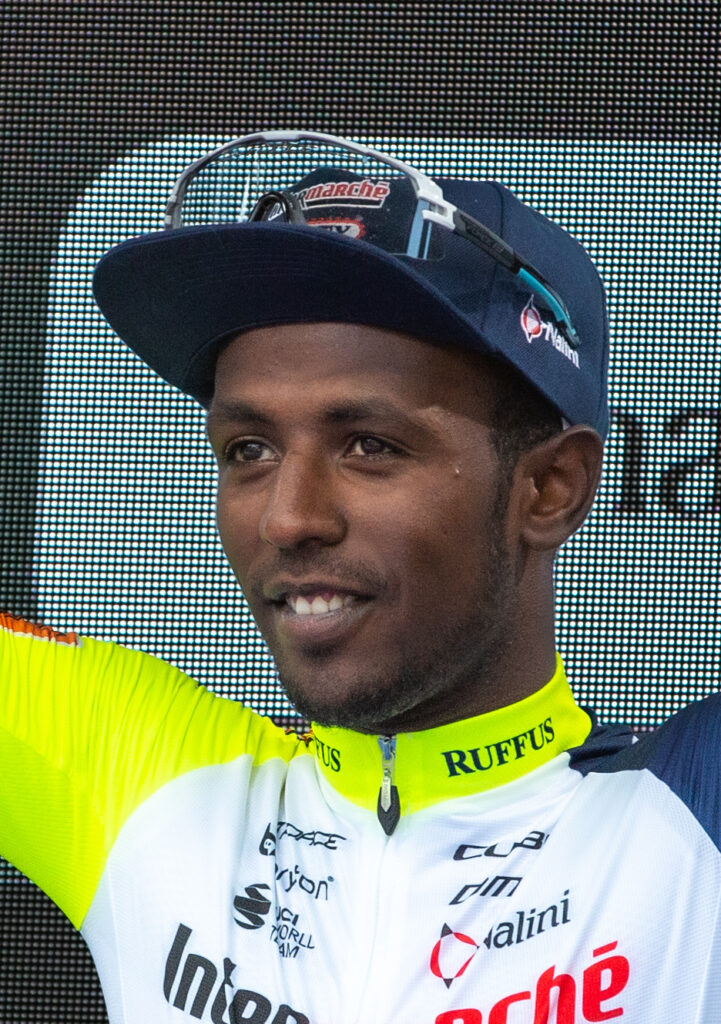 Erytrejska gwiazda kolarstwa, Biniam Girmay, który został pierwszym afrykańskim kolarzem, który zdobył Zieloną Koszulkę w Tour de France 2024. Zdjęcie : Lëa-Kim Châteauneuf (https://commons.wikimedia.org/w/index.php?curid=133974395).