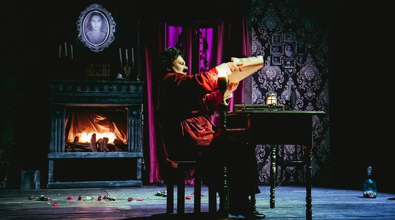 Kruk, na podstawie poematu Edgara Allana Poego. Reżyseria: Anton Bolkunow. Premiera: marzec 2024. Galina Pyanova jako Edgar Allan Poe. Zdjęcie: Alina Bakhautdinova