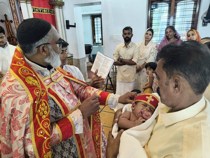 Chrzest w syryjskim kościele ortodoksyjnym w Indiach. By Ronyrajan95 – Own work, CC BY-SA 4.0, https://commons.wikimedia.org/w/index.php?curid=168806301