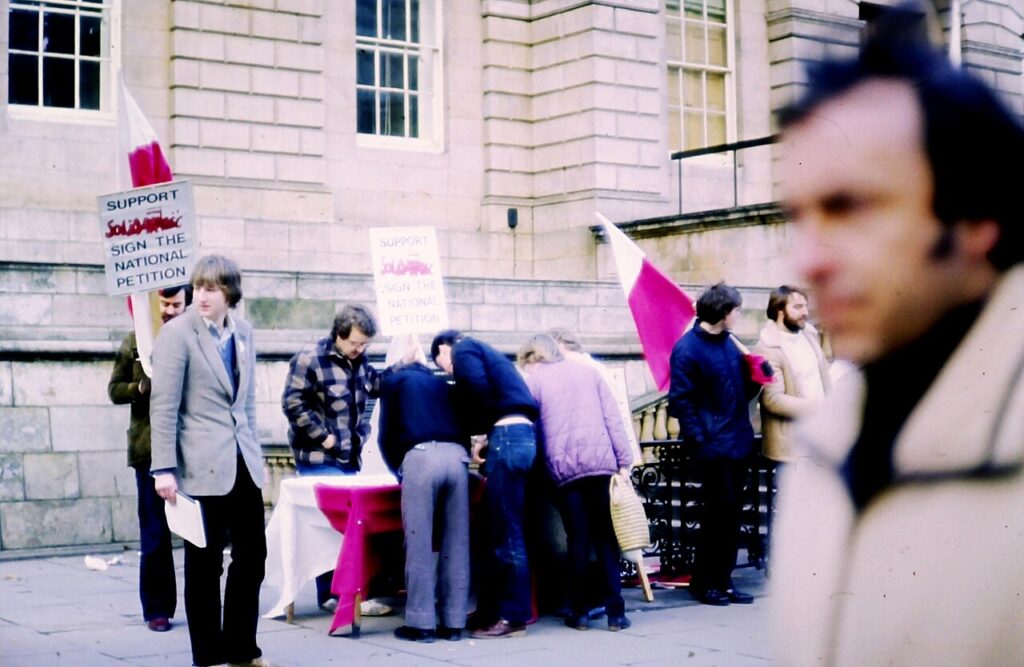 Studenci w Szkocji zbierają podpisy pod petycją popierającą Solidarność w 1981 r. By Kim Traynor – Own work, CC BY-SA 4.0, https://commons.wikimedia.org/w/index.php?curid=37849092