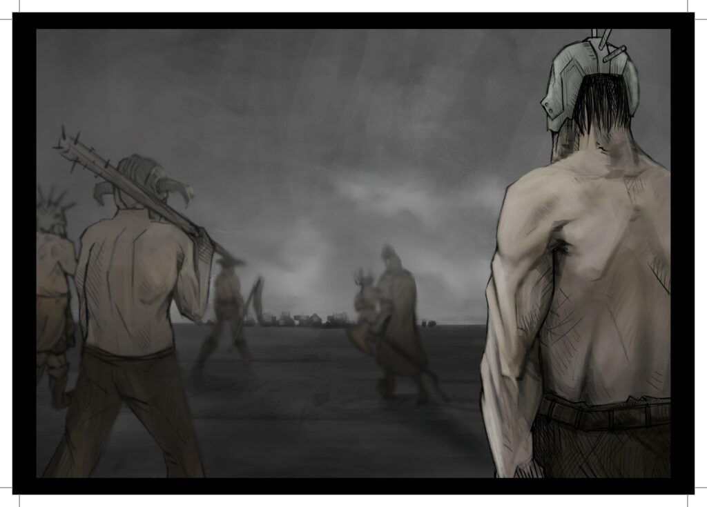Kolejny świt. Z lasu wyłania się grupa wojowników w maskach, którzy napadają na śpiących jeszcze mieszkańców. Tylko nielicznym z nich udaje się uciec. W obecności nielicznych kobiet i dzieci najeźdźcy mordują wziętych do niewoli jeńców, po czym opuszczają spustoszoną i zniszczoną osadę.