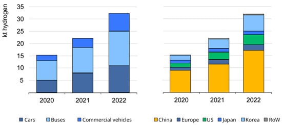 - Liu, F.; Mauzerall, DL; Zhao, F.; Hao, H. Wdrażanie pojazdów na ogniwa paliwowe w Chinach: redukcja emisji gazów cieplarnianych dzięki przejściu floty ciężarówek o dużej ładowności z silników Diesla i gazu ziemnego na napęd wodorowy. Int. J. Hydrogen Energy 2021 , 46 , 17982–17997. [ Google Scholar ] [ CrossRef ]