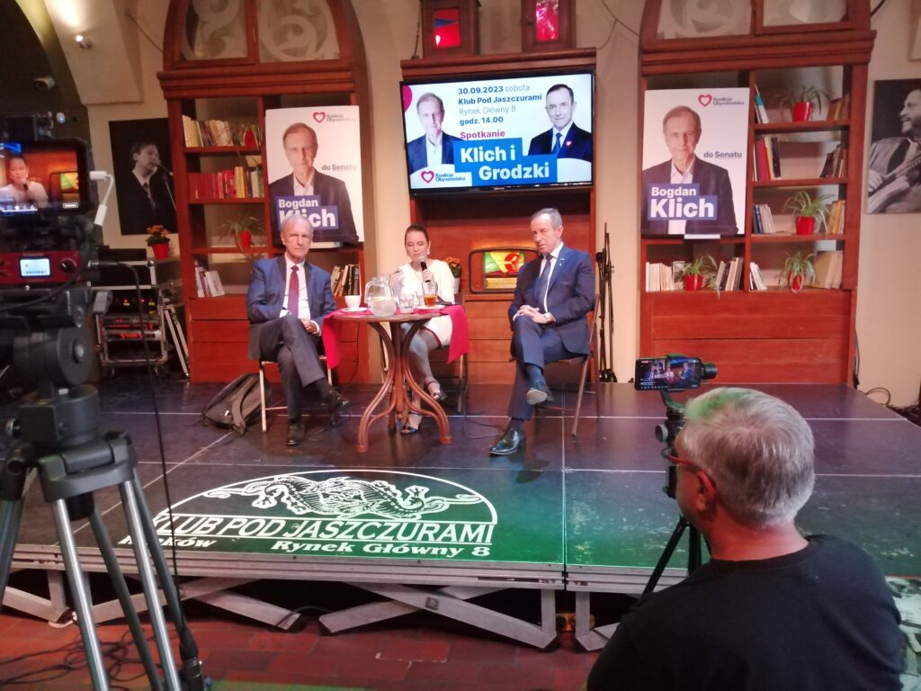 Wpadłem na kawę do klubu „Pod Jaszczurami”. Wystrój tego miejsca prawie się nie zmienił, może poza barem, który nie różni się dziś od podobnych w różnych pubach. Cóż, prawa rynku dotknęły również życie studenckie. Niemniej jednak coś z dawnych klimatów tu pozostało. Wprawdzie z kulturą studencką ma to niewiele wspólnego, ale dowiedziałem się (była godzina 12.30), że o 14.00 ma się tu odbyć debata wyborcza, spotkanie z Bogdanem Klichem i Tomaszem Grodzkim.