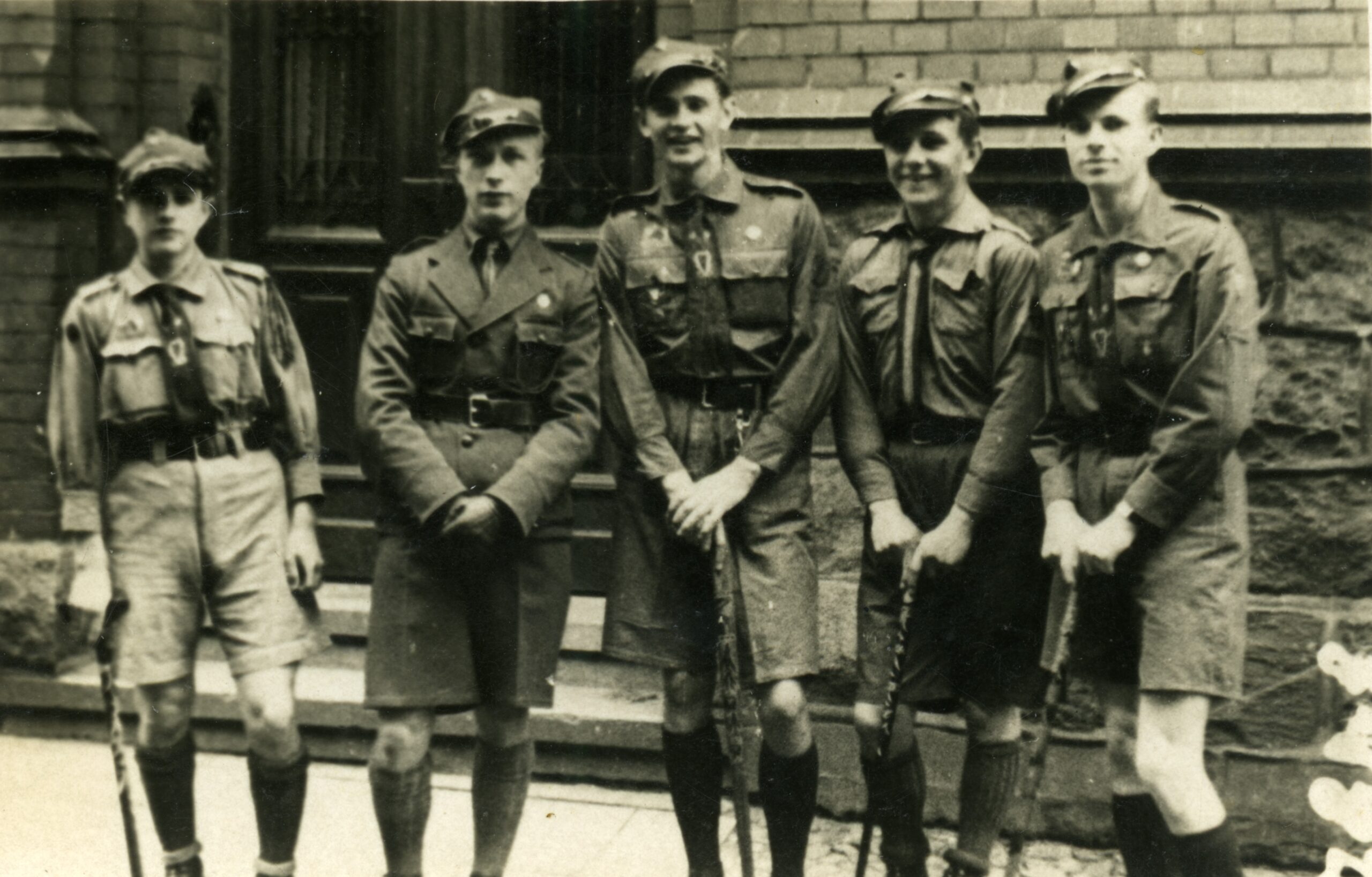 Grupa harcerzy z laskami skautowskimi, 1936 r. Zbiór por. Romana Zygmunta Skwary. Ze strony IPN / https://edukacja.ipn.gov.pl/edu/materialy-edukacyjne/teki-edukacyjn/harcerstwo-w-sluzbie-rz/147509,Fotografie.html