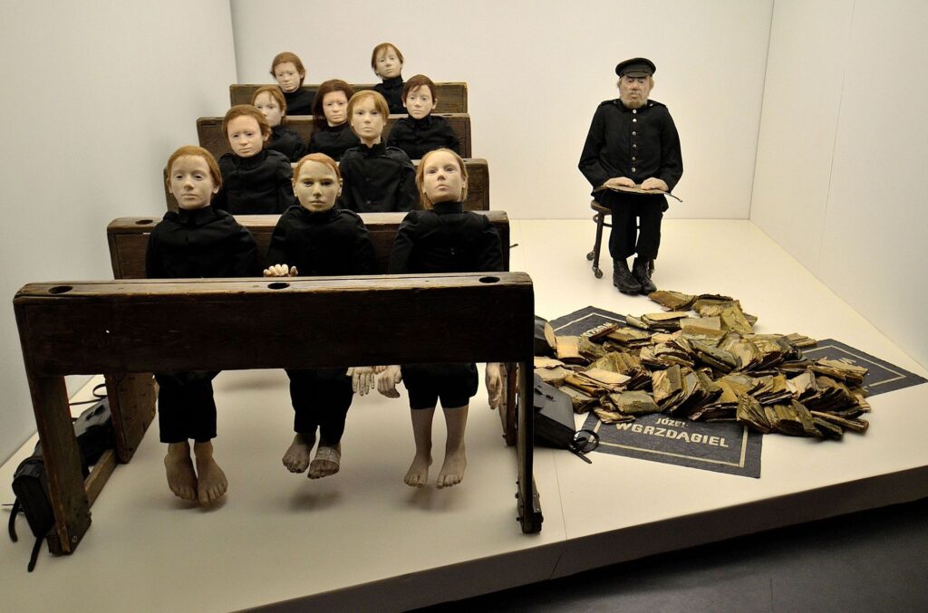 Obraz wyróżniający: Ławki szkolne i manekiny – fragment stałej ekspozycji do spektaklu Umarła klasa na wystawie czasowej w Muzeum Literatury im. Adama Mickiewicza w Warszawie. Autorstwa Adrian Grycuk – Praca własna, CC BY-SA 3.0 pl, https://commons.wikimedia.org/w/index.php?curid=24274872