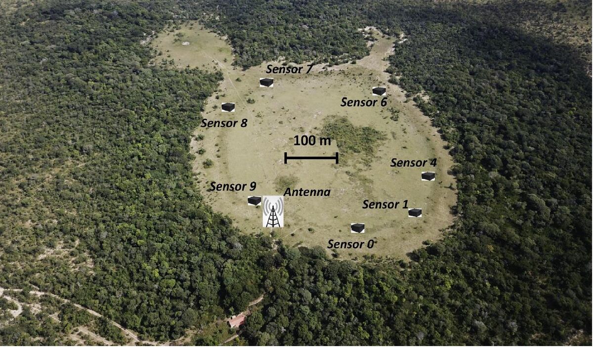Ryc. 3.2 Krąg wróżek w Brazylii, według Morettiego i in., Ref. 10, reprodukowany w wielu dokumentach SPE. Plik : Fairy Circle in Brazil.jpg. https://petrowiki.spe.org/Exploration_for_natural_hydrogen