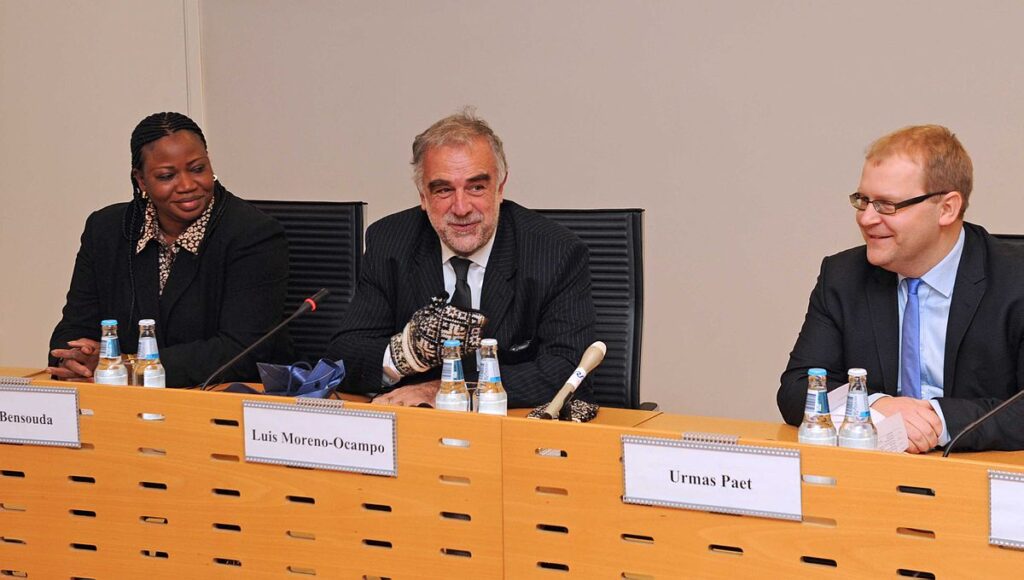Prokuratorzy Międzynarodowego Trybunału Karnego Fatou Bensouda i Luis Moreno Ocampo z ministrem spraw zagranicznych Estonii Urmasem Paetem w 2012 r. Z Wikimedia Commons, repozytorium wolnych mediów.