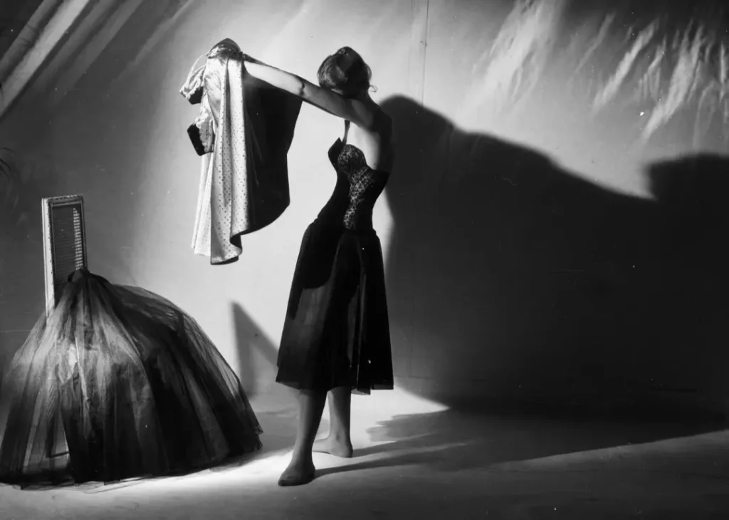 W 1947 roku potentat mody Christian Dior zadebiutował swoim „New Look”, który szybko podbił świat. Kobieca sylwetka w kształcie litery A miała pełną, zwiewną spódnicę i zaakcentowaną talię, która miała podkreślać kobiecą figurę klepsydry — wyraźny kontrast z męskim wyglądem sprzed II wojny światowej.