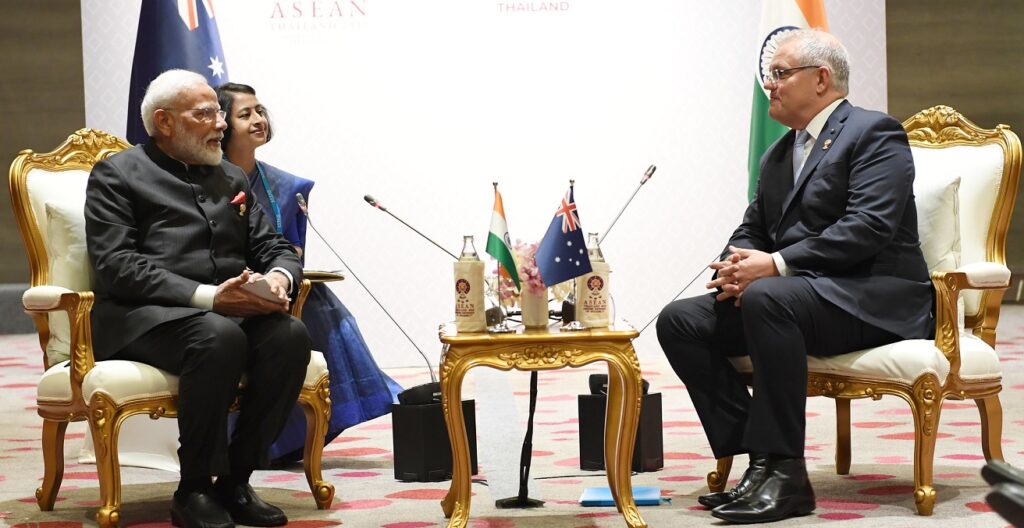 Stosunki indyjsko-australijskie nadal się pogłębiają. Dzięki trzem wirtualnym spotkaniom na szczycie w ciągu miesiąca stosunki między Indiami a Australią wydają się być na najwyższym poziomie w historii. Na przykład 2 kwietnia podczas wirtualnej ceremonii w obecności premierów Narendry Modi i Scotta Morrisona umowa o współpracy gospodarczej i handlu między Indiami a Australią (ECTA) została podpisana przez ministrów handlu krajów Piyush Goyala i Dana Tehana. Porozumienie, które zostało nazwane „przełomowym momentem” w historii stosunków indyjsko-australijskich, ma przenieść stosunki obu krajów na wyższy poziom.