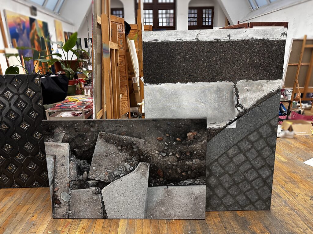 Na wystawie w galerii Żak Basia Tymoszuk zaprezentuje najnowsze obrazy, które skrupulatnie odtwarzają tekstury i powierzchnie miejskiego krajobrazu — betonowe płyty, asfalt, popękany chodnik i inne pozornie banalne elementy. Każda z warstw w jej obrazach pachnie codziennością. Świat złożony z cząstek, małych wycinków z przestrzeni. Tymoszuk w tych codziennych zwykłościach dostrzega niezwykłość. Z czułością i zrozumieniem podchodzi do tego co zużyte, podeptane, często pomijane bez namysłu. Przekształca ducha miasta na język wizualny, jej obrazy pozbawione są ludzi ale nie życia. Artystka swoją twórczością przypomina, że miasto to nie abstrakcyjna struktura, a miejsce podlegające ciągłym zmianom związanym z upływającym czasem i działaniami mieszkańców.