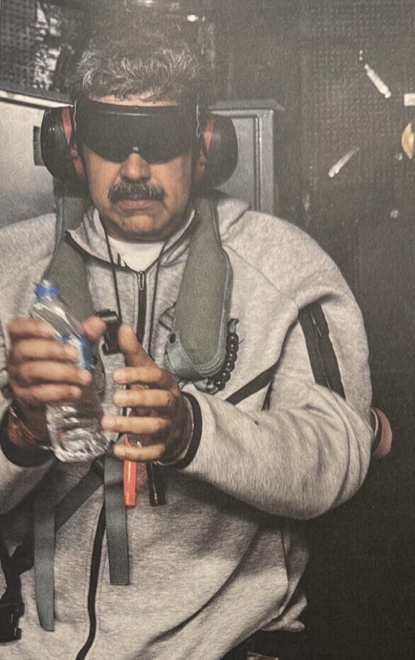 Nicolás Maduro na pokładzie USS Iwo Jima po schwytaniu przez armię amerykańską. Domena publiczna.