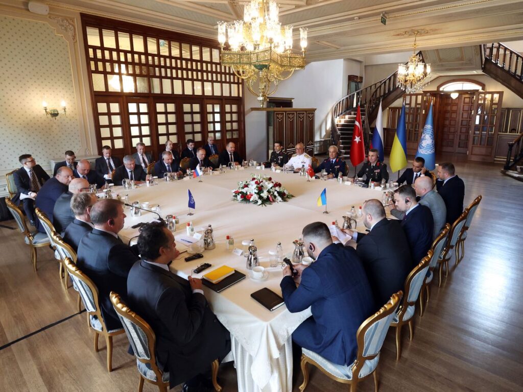 Obraz wyróżniający: Przedstawiciele czterech stron przy stole negocjacyjnym w Stambule. By International Maritime Organization – IMO welcomes maritime humanitarian corridor in Black Sea, CC BY 2.0, https://commons.wikimedia.org/w/index.php?curid=121346752