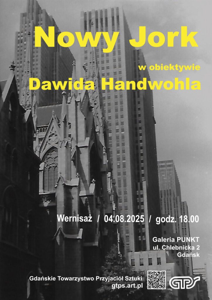Gdańskie Towarzystwo Przyjaciół Sztuki zaprasza na wystawę fotografii Dawida Handwohla pt. „Nowy Jork w obiektywie Dawida Handwohla”. Niezwykła kolekcja utrwalona w obiektywie aparatu w 1964 r. Koncept wystawy powstał we współpracy z Bolesławem Szenicerem i Łukaszem Kołodziejczykiem z Fundacji Cmentarza Żydowskiego „Gęsia”.