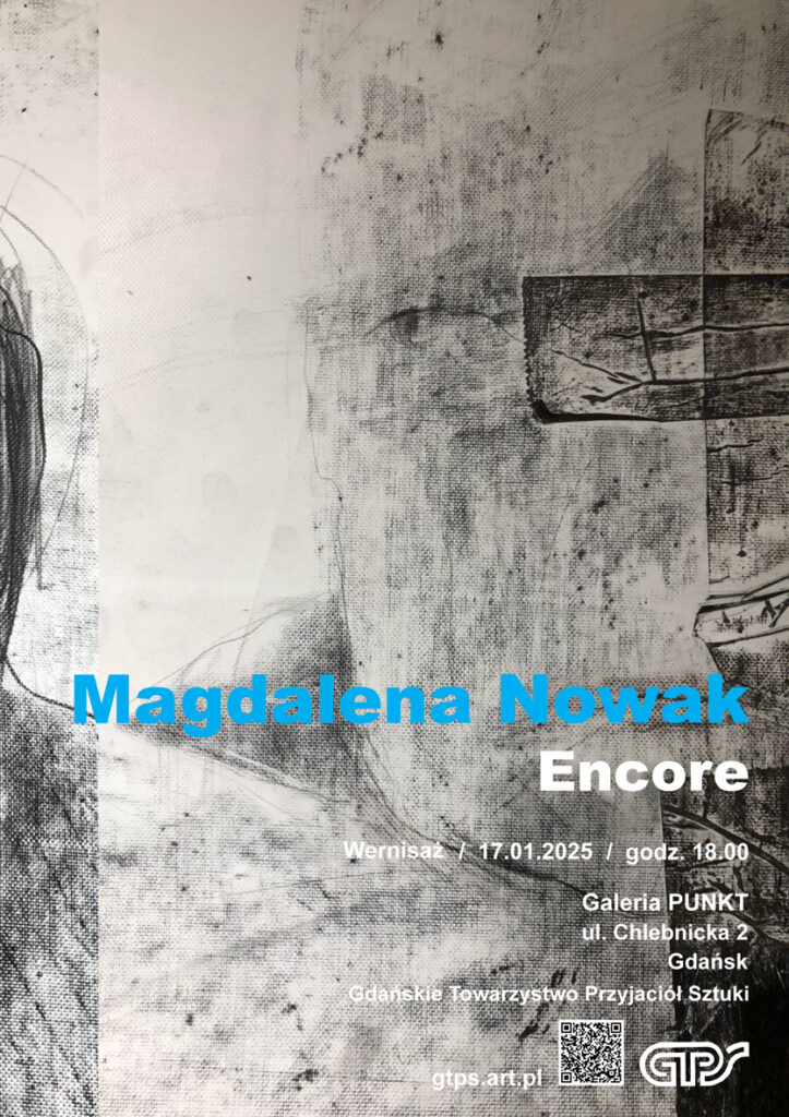Zapraszamy / Wystawa prac Magdaleny Nowak pt. „Encore” Wernisaż: 17 stycznia 2024, godz. 18:00 Miejsce: Galeria „PUNKT”, ul. Chlebnicka 2