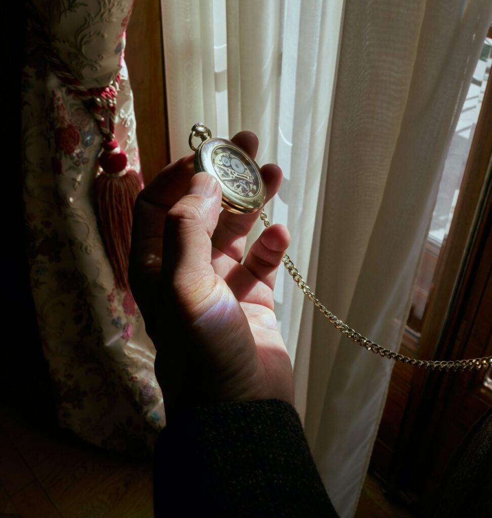 Nagle wśród szpargałów starzec dostrzegł złoty błysk. Podszedł bliżej i pochylił się nad stoliczkiem. Wstrzymał oddech. „Czy to możliwe?” – dopytywał się w myślach. Ostrożnie wziął do ręki przedmiot godny jego uwagi. A był to zegarek kieszonkowy na łańcuszku. Misternie zdobiony, nieduży, idealnie mieszczący się w klapie kamizelki. Motyw roślinny na przedniej klapce wyblakł lekko ze starości, ale poza tym drobnym mankamentem przedmiot prezentował się nienagannie. Otworzył wieczko. Wskazówki zegarka poruszały się, co wskazywało na wciąż sprawnie działający mechanizm, a w oczy zakuły go delikatne zdobienia na tarczy podkreślające antyczny wzór. Drżącą ręką odwrócił go. Na odwrocie widniały wygrawerowane kursywą inicjały S.M. Jego inicjały. Wszędzie by go rozpoznał. Był to prezent od ojca, ale kiedy jego brat wyruszał w wielką podróż, postanowił podarować mu go, by ten nie zapomniał o swojej rodzinie.